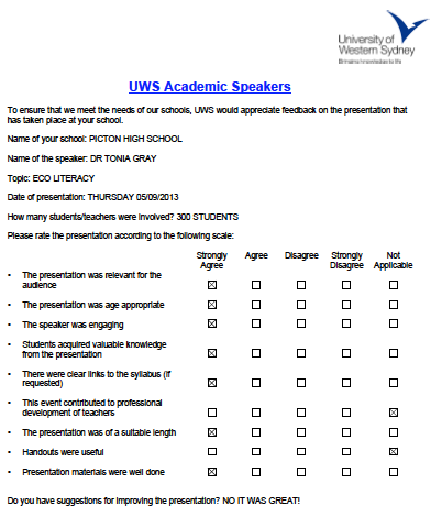 For some twelve years pre-service teachers working toward their degree in PD/H/PE teaching have led valuable learning experiences at Mt Keira Demonstration School under Dr Tonia Gray’s guidance… The learning experiences that I have witnessed at Mt Keira over the past three years of my principalship here have been very impressive. Very impressive for the development of both your pre-service teachers and my students. … a well organised, exceptionally enjoyable and outcome laden activity from the PD/H/PE program is beneficial to your pre-service teachers. Today I invited parents from my community into school to take part in the last day of this learning experience. As a pure PR activity, this one is a winner!! Every small group of parents I chatted with were very excited by the smiles on their children’s faces, by the quality of the experiences being offered and the enthusiasm being displayed.